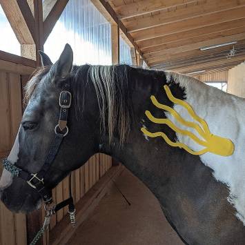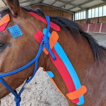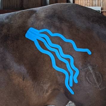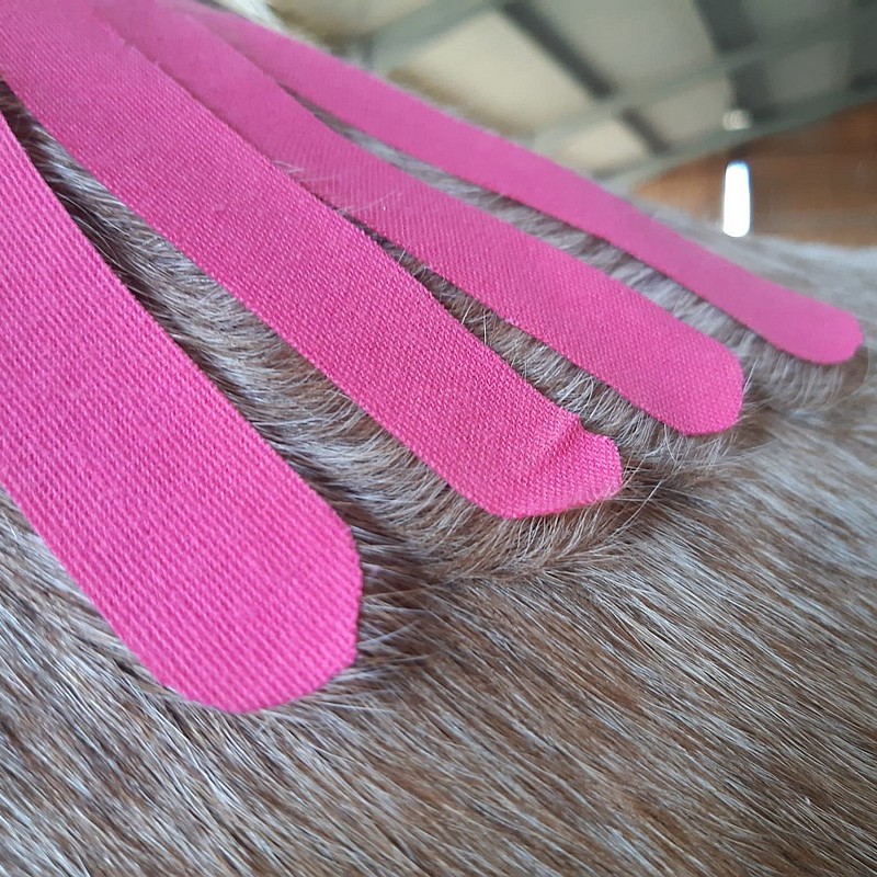 Die Wirkung des Tapes auf dem Fell geht über die Haarwuzeln, die Signale an die Haut und die damit verbundenen Nerven- und Blutbahnen weitergibt.