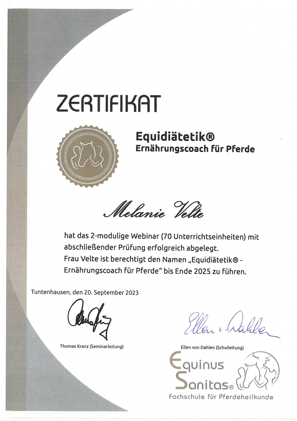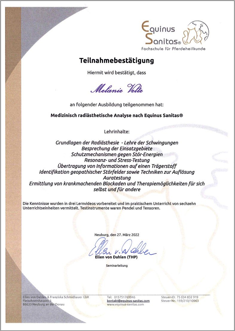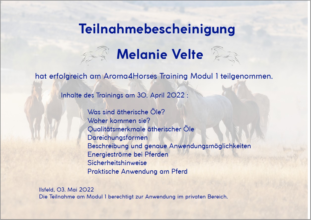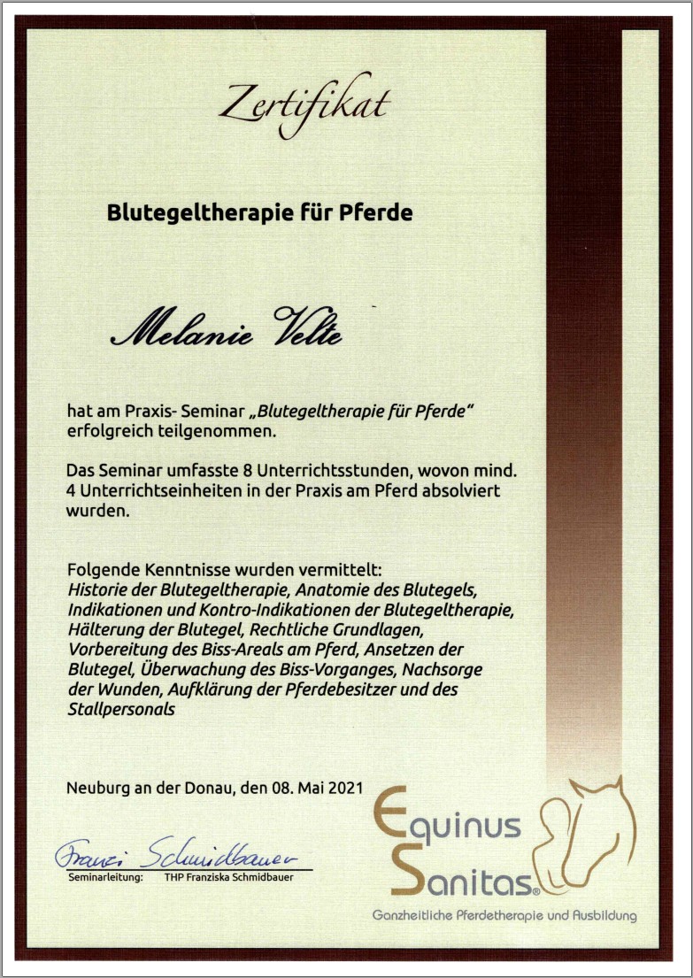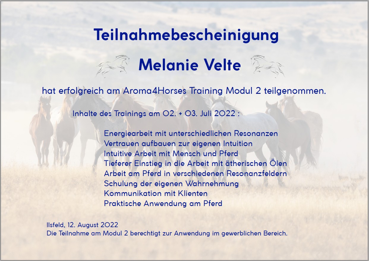 Zertifikat Tierheilpraktikerin spezialisiert auf Pferde